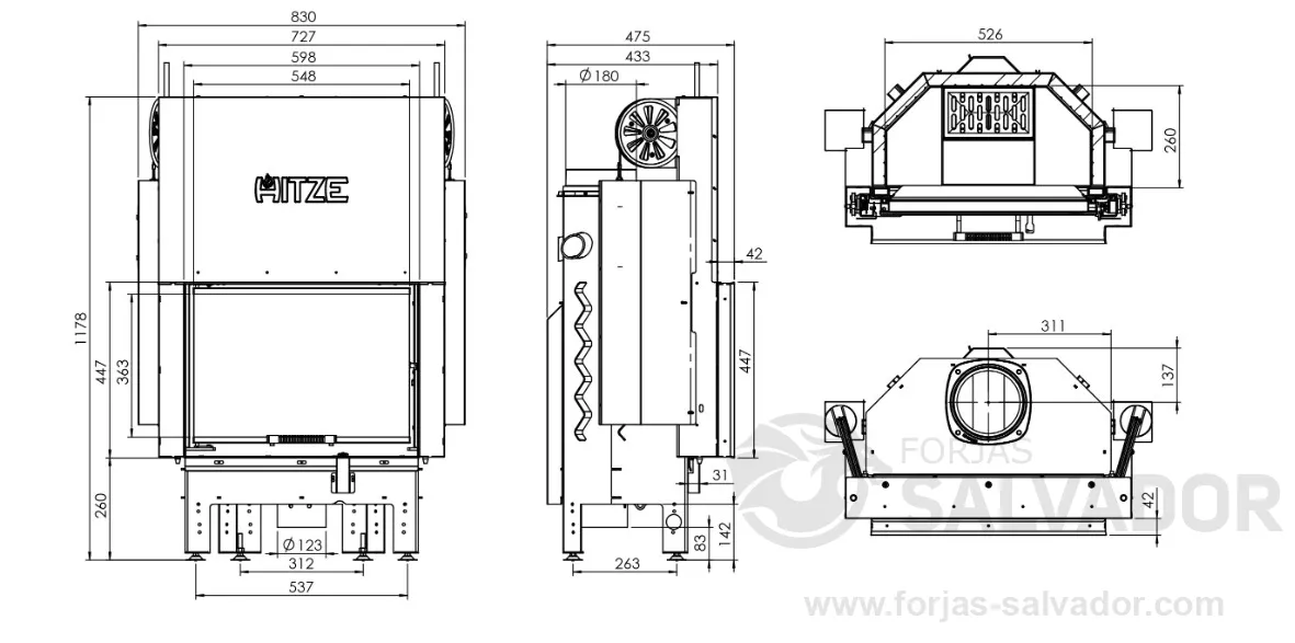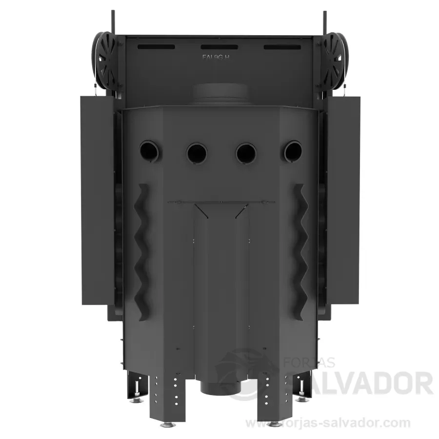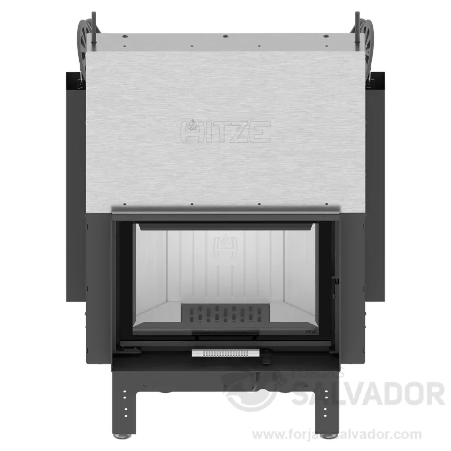 El Hitze Albero AL9G, es un hogar de leña frontal y compacto. Con 9 kW de potencia, puerta guillotina, cristal panorámico, doble combustión, cámara estanca, interior cerámico y sistema Airwash cristal limpio.