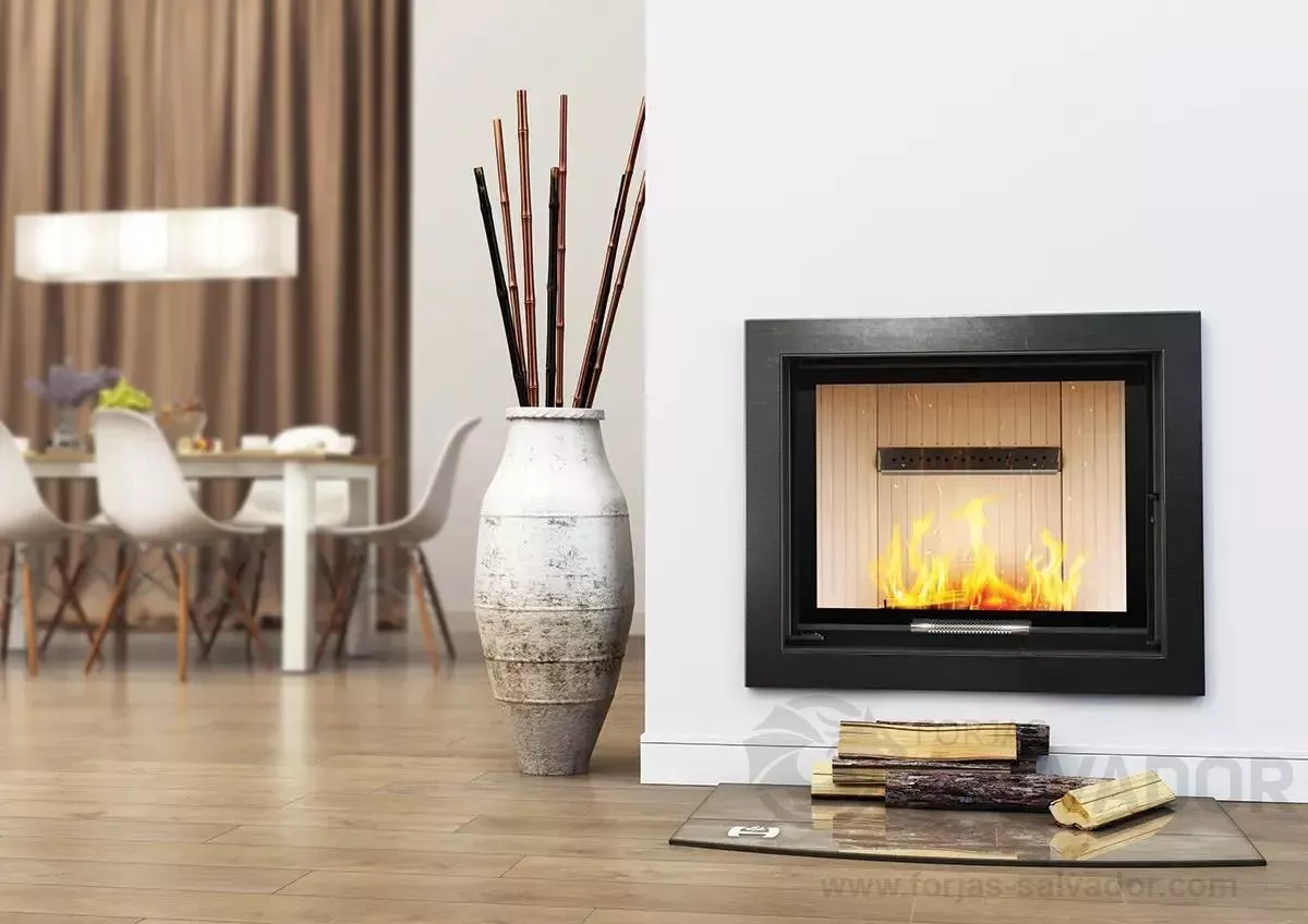 Hogar de leña compacto, frontal y moderno con alto rendimiento y tecnología limpia